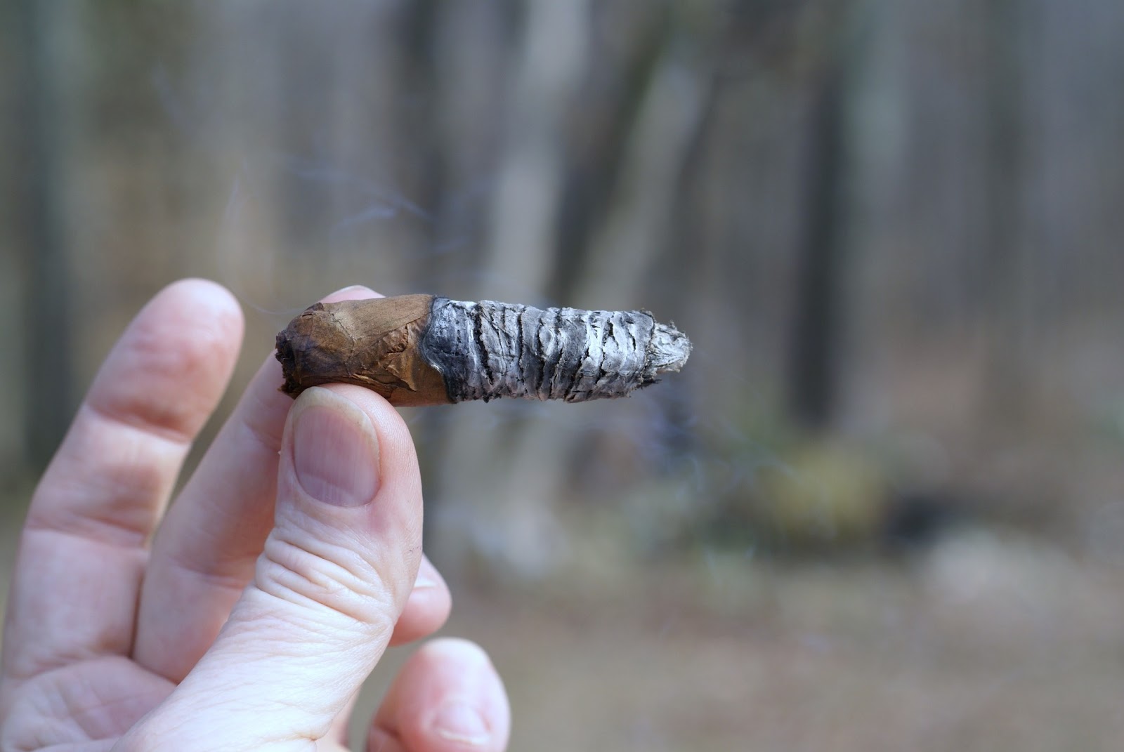“This is a fairly ugly cigar. Very sloppy applied singly cap. No large vanes on the wrapper, but has signs of mishandling sometime in its life with splotchy dark discoloration. Looks like it has some age on it. Visually looks to have an uneven fill. Nothing notable about the pre-light aroma a little tobacco and hay.” –Jason (bigslowrock)