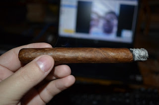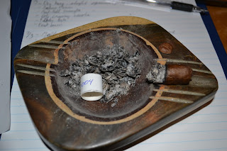 “This is a fairly ugly cigar. Very sloppy applied singly cap. No large vanes on the wrapper, but has signs of mishandling sometime in its life with splotchy dark discoloration. Looks like it has some age on it. Visually looks to have an uneven fill. Nothing notable about the pre-light aroma a little tobacco and hay.” –Jason (bigslowrock)